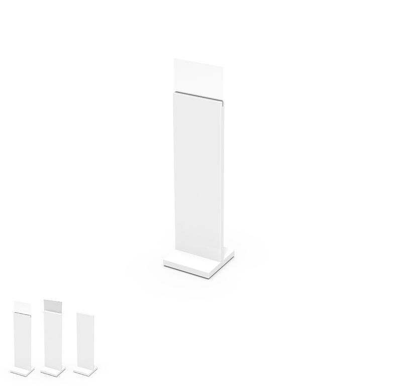 Hochglanz lackierter Ständer in weiss mit 4mm Adaptionsschlitz in Verwendung mit Plexiglas-Aufsteckhalterung (A4 quer) oder bedruckter Forex Platte (297mm Breite).