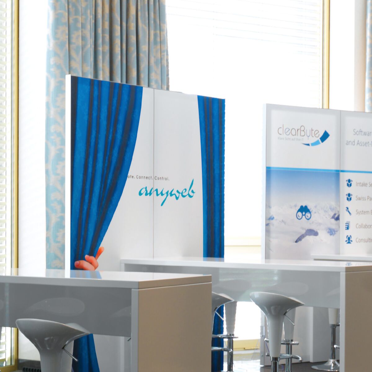 Die Verbindungen der einzelnen Messewand Elemente werden über die Rundum Lochungen gewährleistet. Für den seitlichen Abschluss sind hier die passenden Cover Abdeckungen für Standard-Rahmen & Spezial Rund-Rahmen erhältlich. Jetzt unsere Seiten Abdeckung mieten.