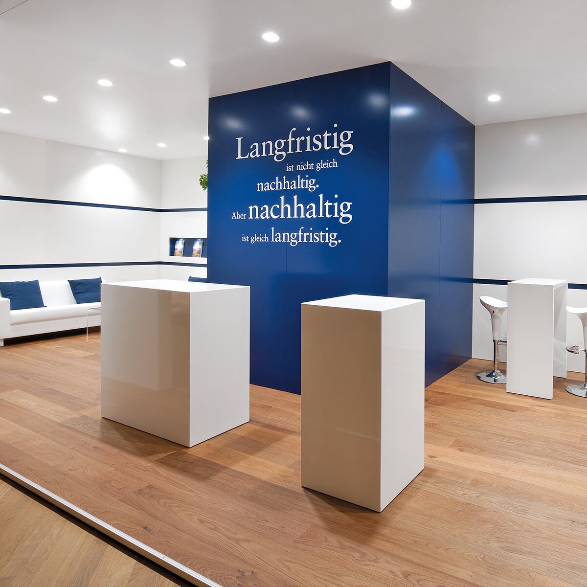 Der ‚Welcome Desk 50/50‘ zum mieten eigenet sich perfekt für einen eindrucksvollen Eingangsbereich an Ihrem Event oder als stilvolle Messe Empfangs Theke. Auf der Front lässt sich zudem Ihr Firmen Logo oder Ihre Werbebotschaft anbringen. Rückseitig befinden sich 2 Ablagefächer mit höhenverstellbarem Tablar. Die Messe Theke zum mieten kann, dank der modularen Bauweise im 50×50 bzw. 100x50cm Raster, mit vielen weiteren Theken zum mieten erweitert werden. Auch als Variante mit Katalogfach, abschliessbarer Tür & offenem Ablagefach als Messe Desk 50/50 oder Messe Desk 100/50 zum mieten erhältlich. Jetzt unsere Empfangs Desks mieten für Ihr Event oder Messe.