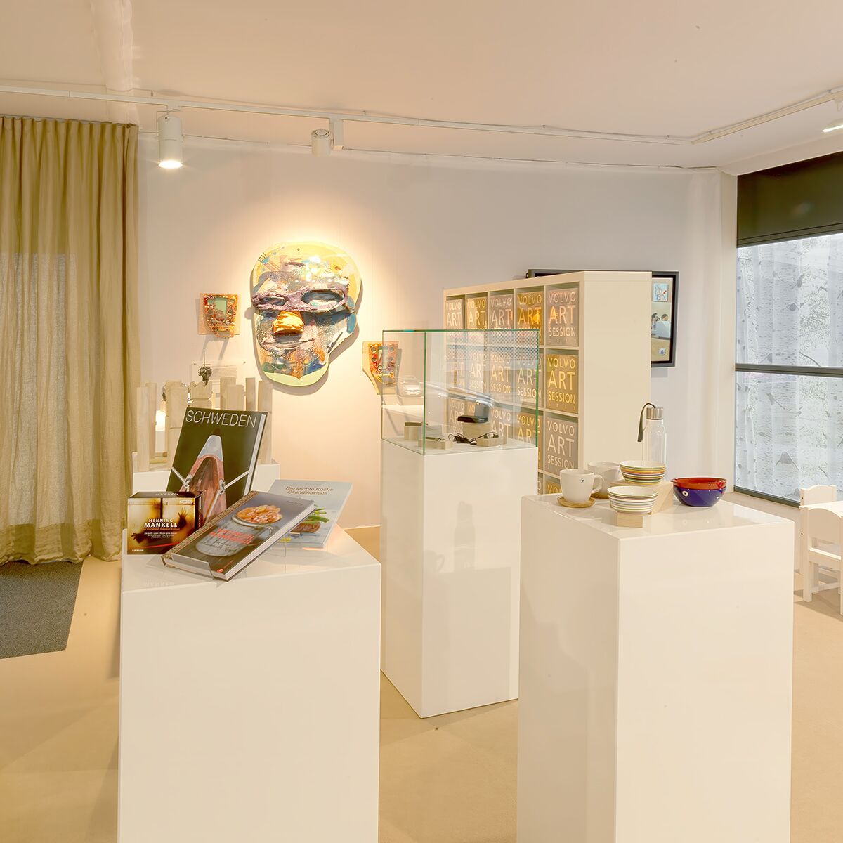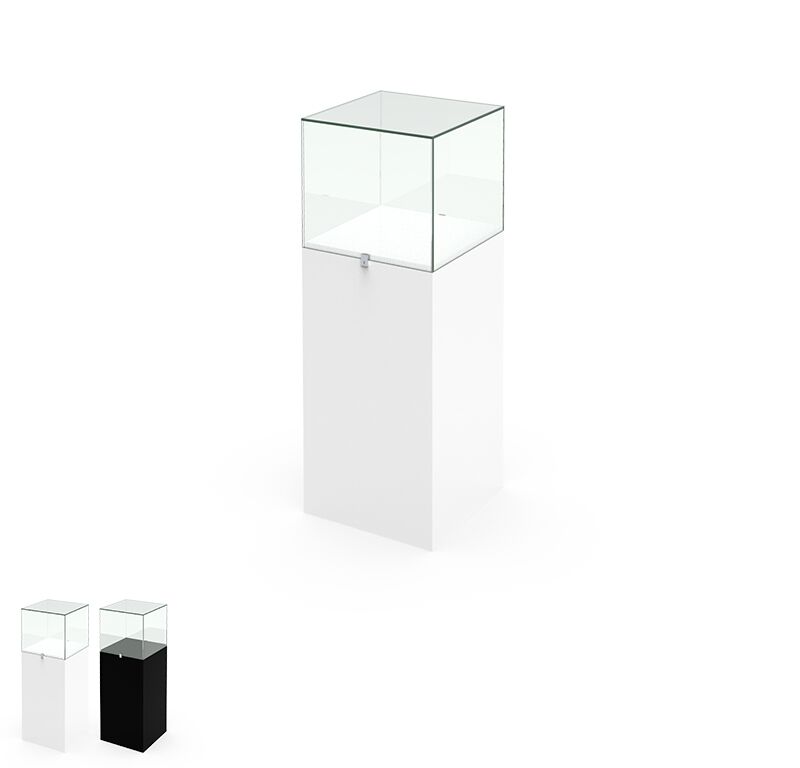 Sockel aus Hochglanz Lackiertem Massiv Holz, Glas Aufsatz in ESG Sicherheitsglas mit abschliessbarer Adaption (Glas/Sockel)