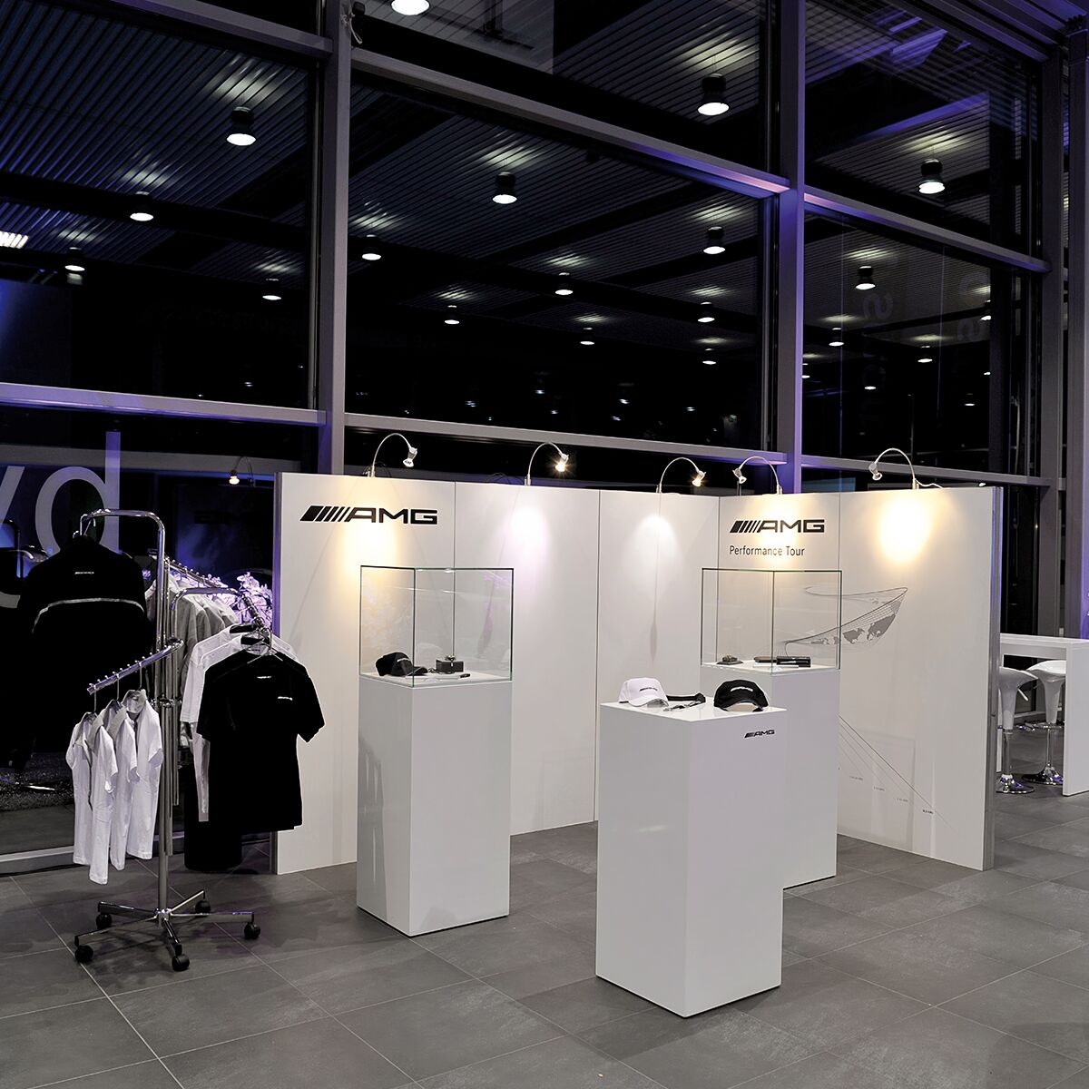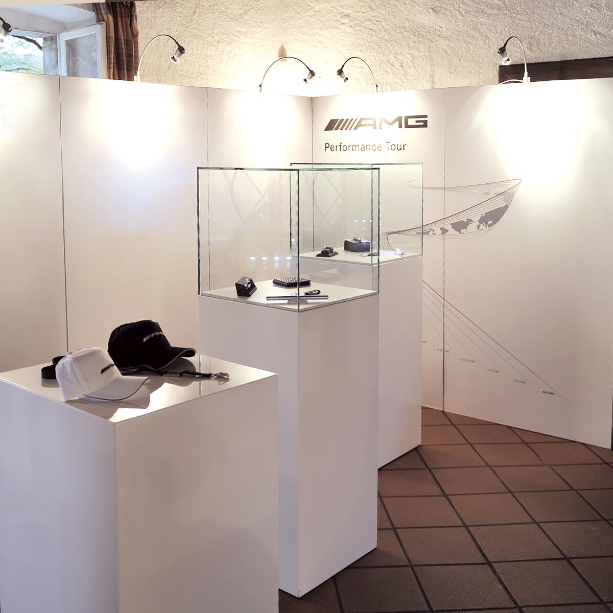 Tipp: Durch die identische Bauweise lassen sich die die 50/50 Vitrinen mit weiteren Modellen aus der CL Miet-Vitrinen Serie zum mieten erweitern.