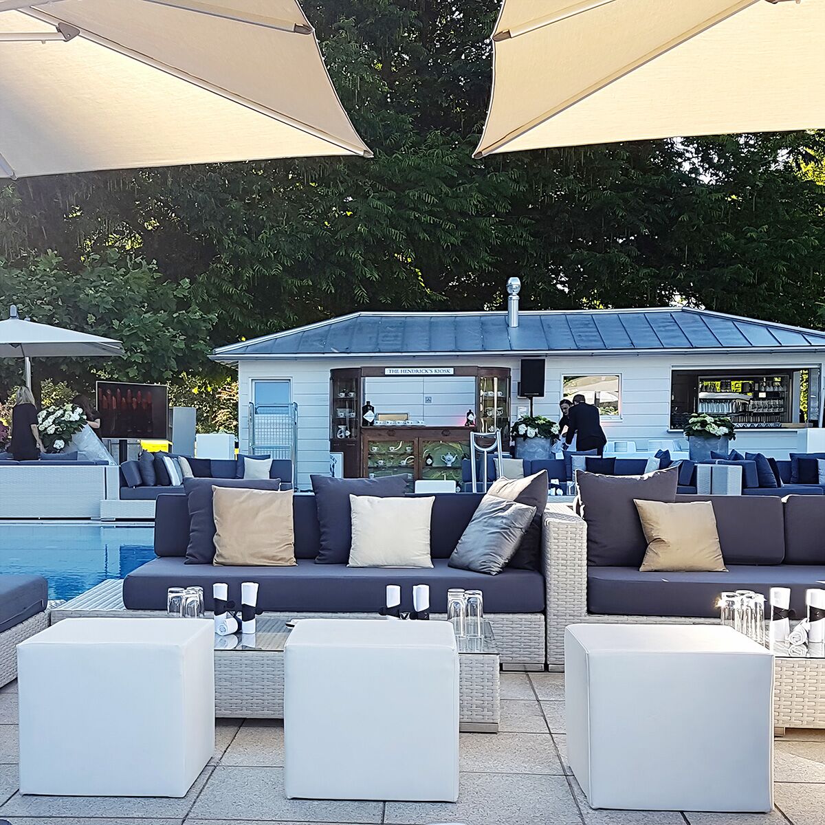 Die elegante Event Rattan Lounge zum mieten in modernem Design besticht durch die hochwertige Verarbeitung & den langanhaltenden Sitzkomfort. Das Lounge Lehnen-Element kann modular mit zusätzlichen Elementen aus der Elegance Mietmöbel Serie und mit Sitzwürfel sowie Outdoor Lounge Sitzbänken erweitert werden. Gestalten Sie so Ihren Outdoor Bereich ganz nach Ihren Vorstellungen & dem vorhandenen Platz. Passend zur Lounge bieten wir auch edle Theken und Stehtische.