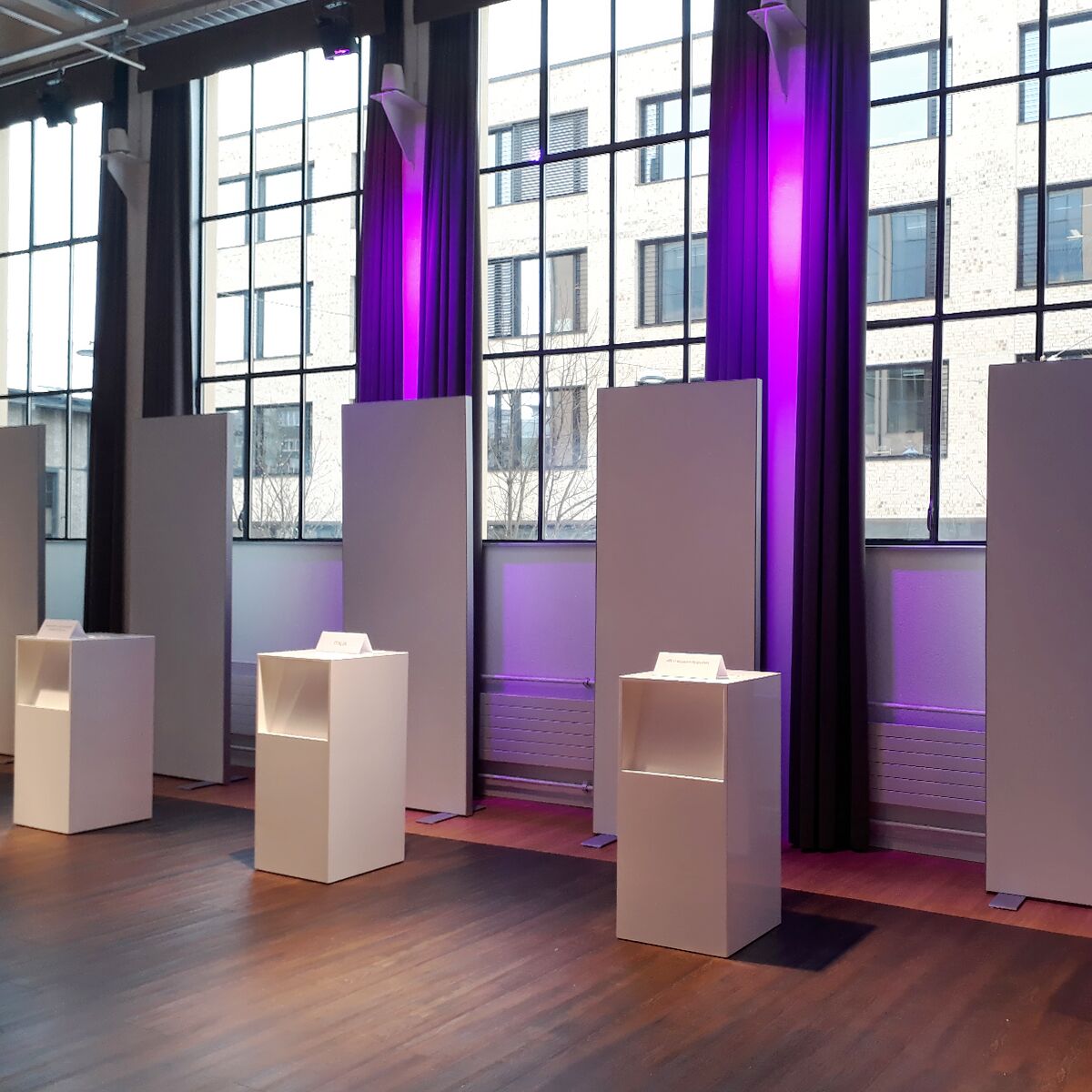 - Beleuchtete Messewände – mit integrierter LED-Beleuchtung für besonders starke visuelle Effekte.