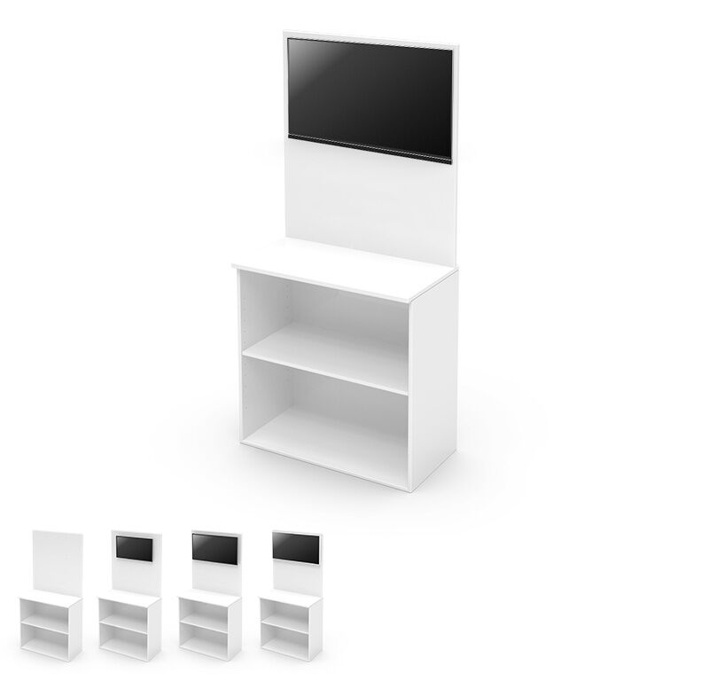 Screen Möbel – Das Multifunktionsmöbel mit integriertem hochauflösendem Screen bietet eine repräsentative Rückwand für Ihren Messe oder Promotion Stand. Die Screen-Rückwand zum mieten kann zudem im Meter Raster nach Ihren Bedürfnissen erweitert werden. Mit dem Hochglanz-Möbel gestalten Sie einen modernen Auftritt auf Ihrer Promotionsfläche mit hoher Sichtbarkeit für den Messe Besucher. Zudem lässt sich das Screen Möbel auch ideal als Bar-Rückwand, mit integrierter Arbeits- & Ablagefläche, nutzen. Die Screens unterstützen dabei Ihren Auftritt visuell.