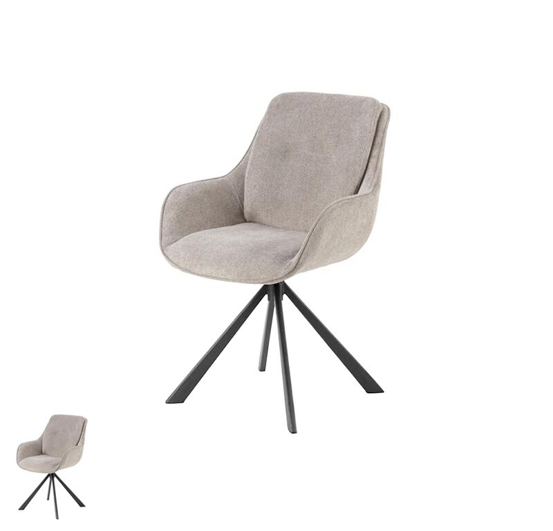 Hochwertiger Polstersessel Sessel mieten mit komfortabler Polsterung und edlem Stoffbezug in sandfarben. Ausgestattet mit einem stabilen 4-Stern-Fußkreuz aus schwarz matt pulverbeschichtetem Stahl.