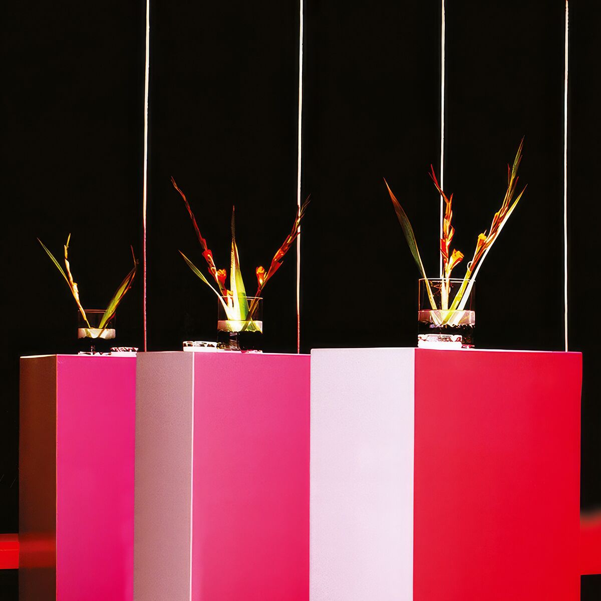 Dank seiner quadratischen Form passt der Stehcube sowohl in intime Gesprächsinseln als auch in offene Lounge-Bereiche – stets eine stilvolle Ergänzung. Seine 50×50 cm Tischfläche bietet ausreichend Fläche für Gläser oder Snacks, ohne visuell aufzutragen. Ideal für den Apéro, als zusätzlicher Platz bei Cocktailpartys oder als moderne Säule in wandelbaren Eventkonzeptionen.