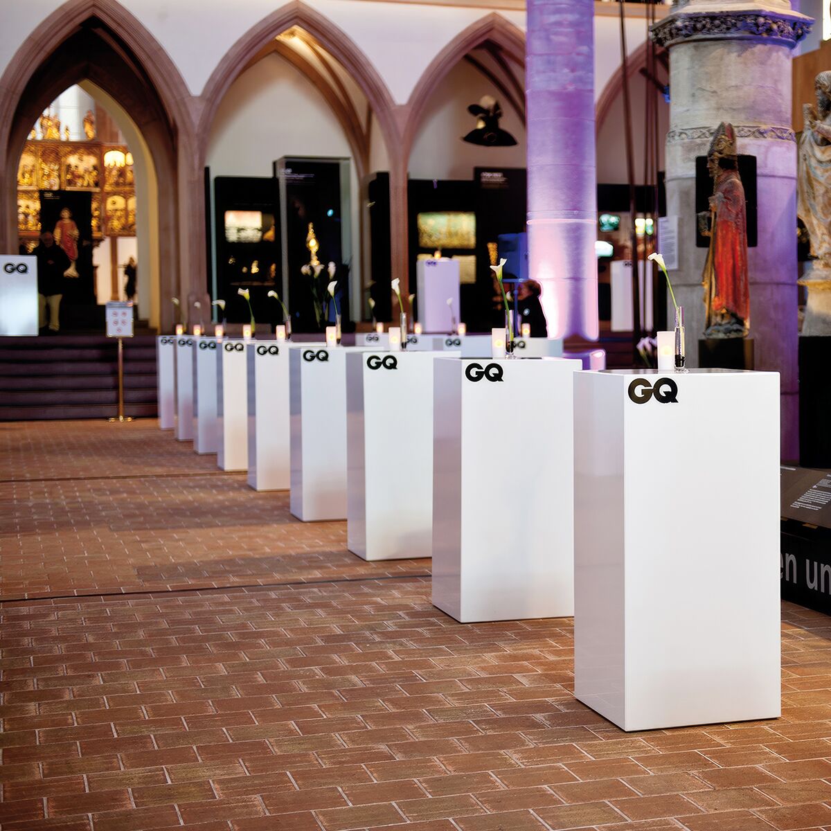 Stehtisch mieten – Durch sein schlichtes kubisches & zeitloses Design lässt sich der Stehcube für viele Bereiche einsetzten – ob als Apéro Tisch (als alternative zum herkömmlichen Bistrotisch zum mieten), als Besprechungsinsel, als Sockel für Ihre Ausstellungs Stücke oder als Redner Tisch für Diskussionsrunden – der massive & glanzlackierte Sockel in hochwertiger Verarbeitung wirkt dabei immer professionell. Auf Wunsch lassen sich die Sockel zum mieten auch temporär mit Ihrem Firmen Logo oder Event Brand beschriften. Wir übernehmen für Sie gerne den Druck & die Montage.