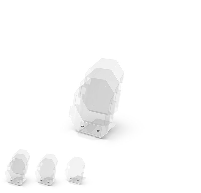 Tisch Prospektsteller aus massivem Plexiglas mit stabiler Standfuss, erhältlich als 1/2/3-Fach Variante, Flexibel erweiterbar dank Clip Technik.