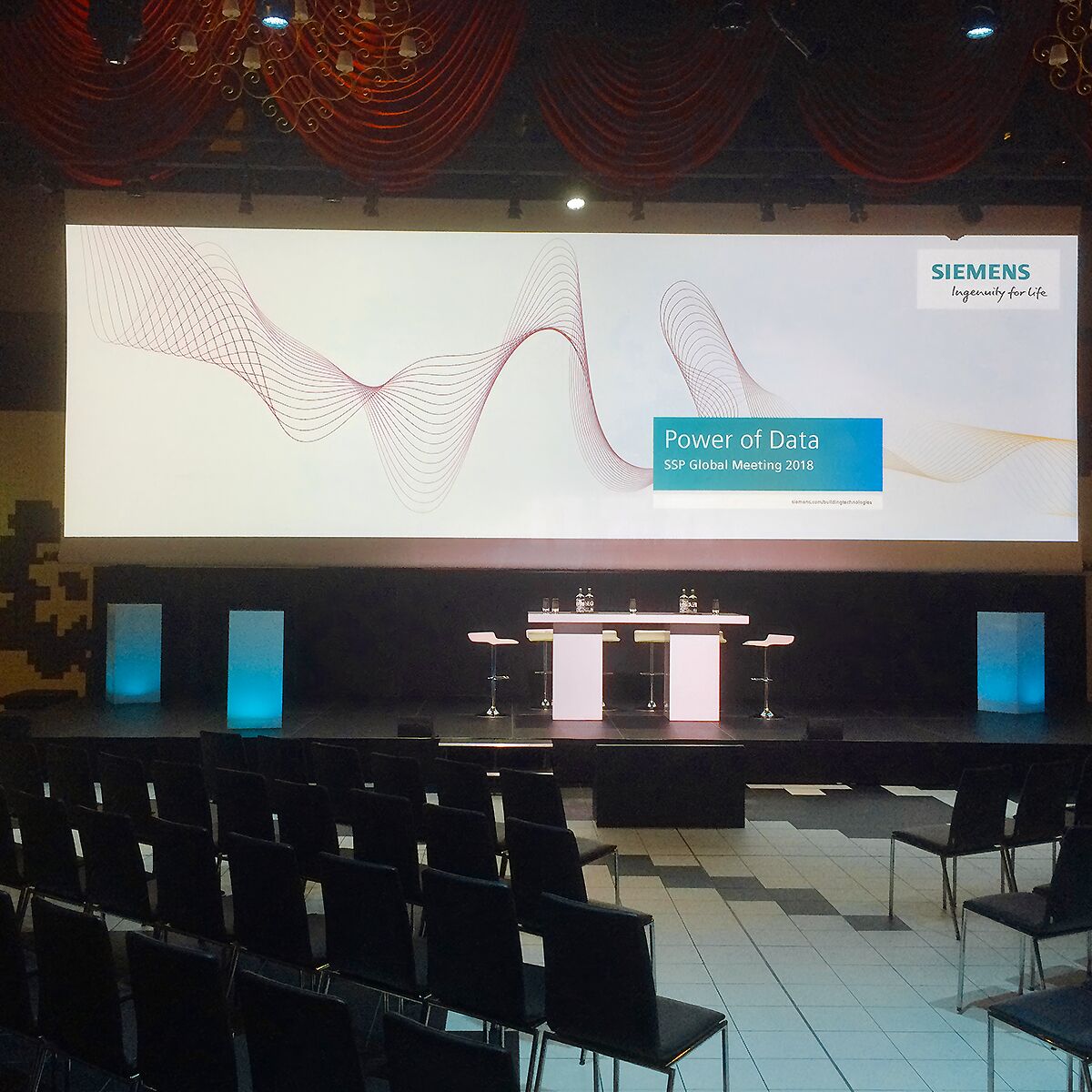 Tipp: Gestalten Sie eine moderne Bankettbestuhlung mit Hochtischen und den Ruby Barhockern zum mieten in weiss oder schwarz.