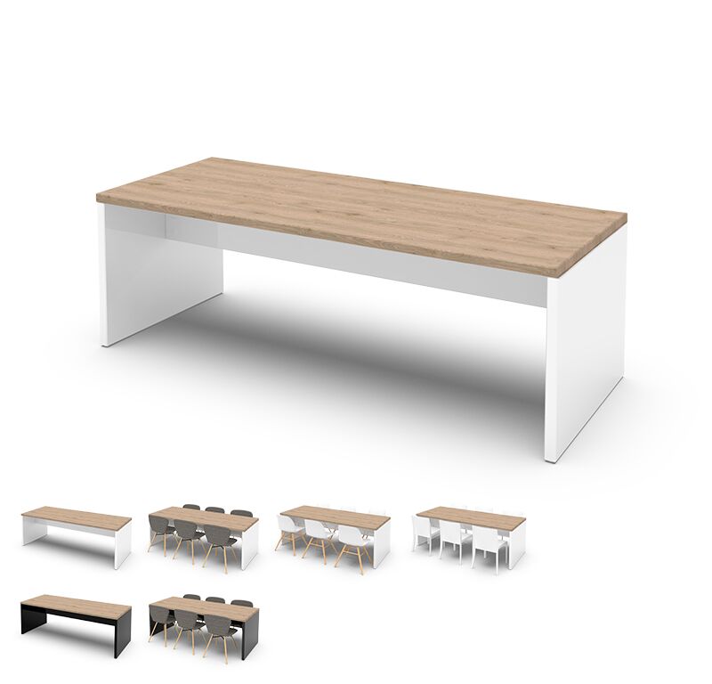 Dieser grosszügige Event Holztisch vereint elegantes Design mit funktionaler Vielseitigkeit. Die helle Eichenholzplatte sorgt für eine warme, hochwertige Optik, während das Untergestell in Weiss oder Schwarz in Hochglanz einen modernen Akzent setzt.