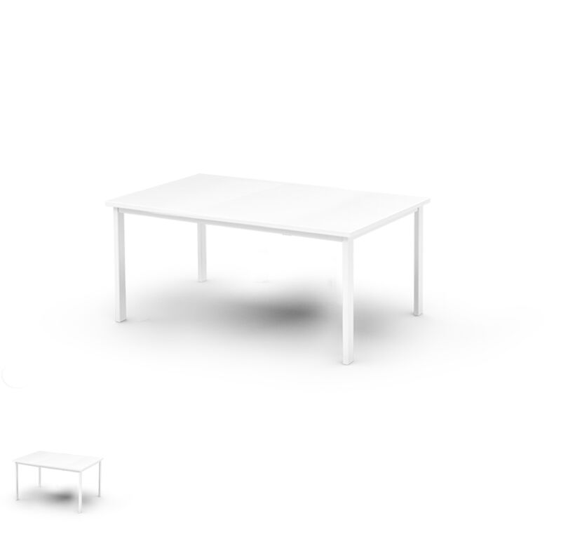 Tischplatte aus Holz weiss, Gestell in leichtbauweise aus Aluminium weiss lackiert
